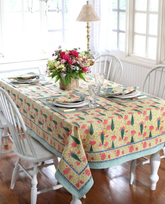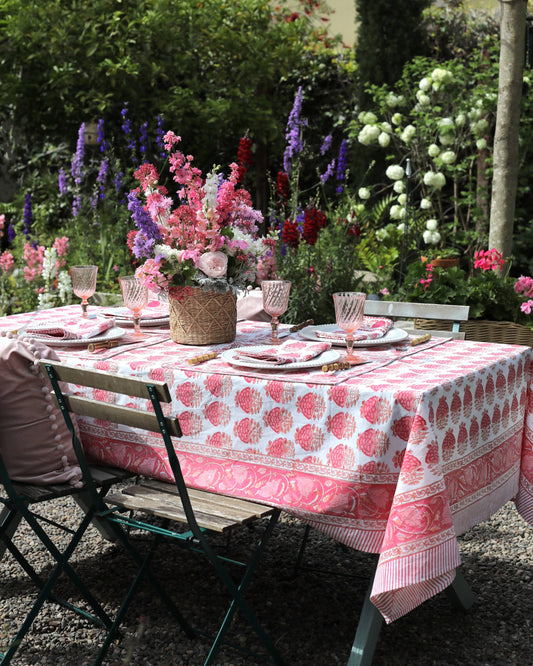 Pink Block Print Tablecloth