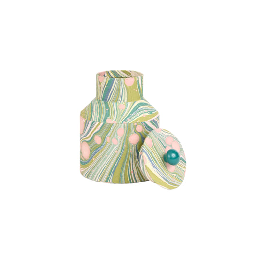 Hand-Marbled Scallop Waste Bin in Robin Blue
