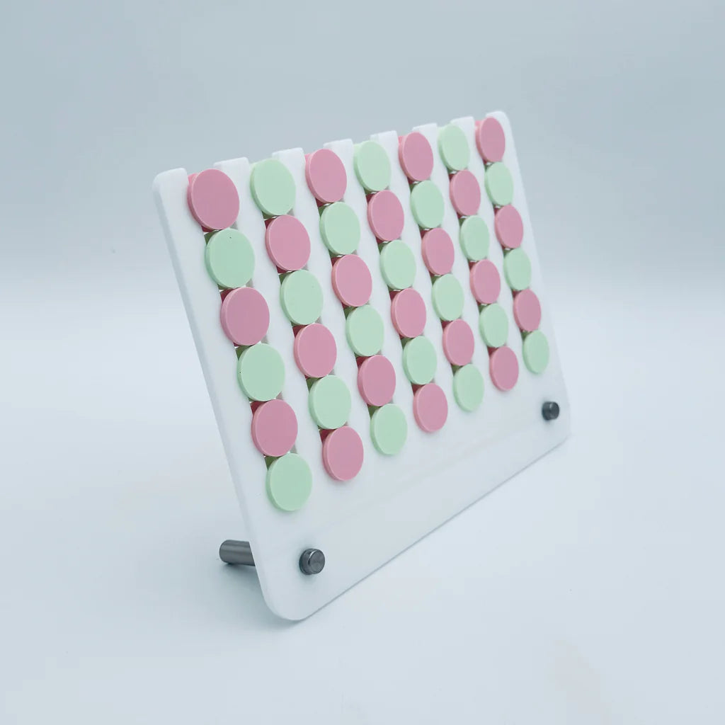 Connect 4 in style with this beautiful acrylic set including a white stand with pink and aqua game pieces. Add Connect 4 to your game night at our card tables!