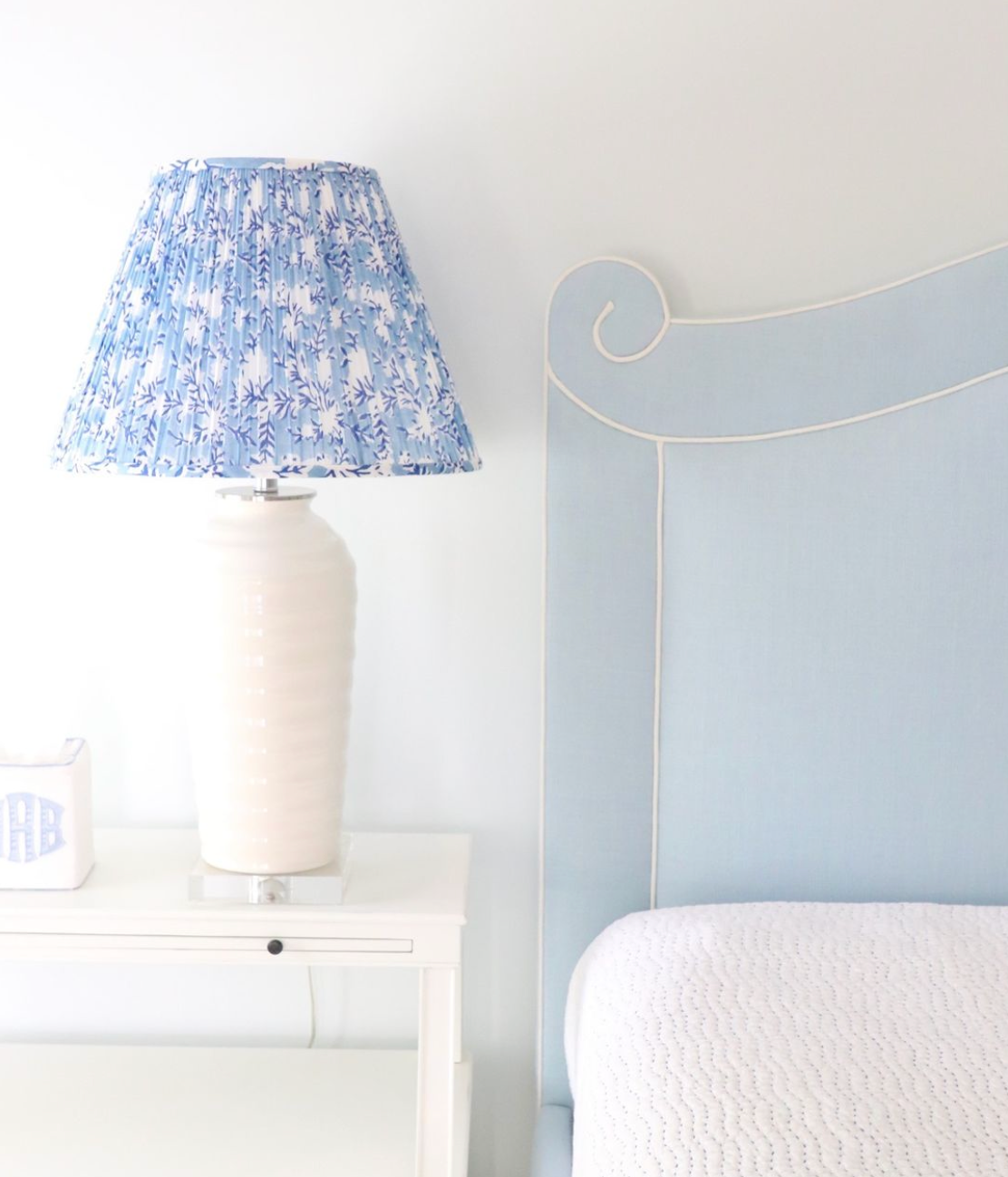 Contrast Piping: Piping fabric is a different color than the main headboard fabric
