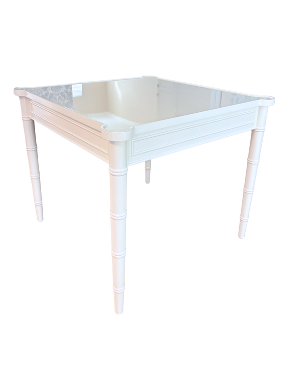 The Charleston Game Table is perfect for mahjong, rummy, and all your favorite games! Its spacious surface and rounded edges make playing easy and keep drinks and snacks close by. With a high gloss lacquer finish and stylish bamboo legs, it adds a fun, elegant touch to any room, making your game nights even better!