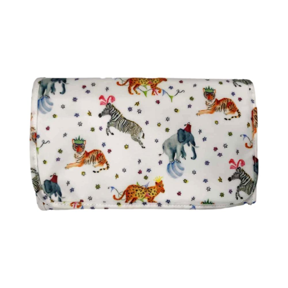 For the mom and baby on the go! Throw this vinyl, wipeable changing pad in your tote and hit the town! This circus print is truly a game changer!