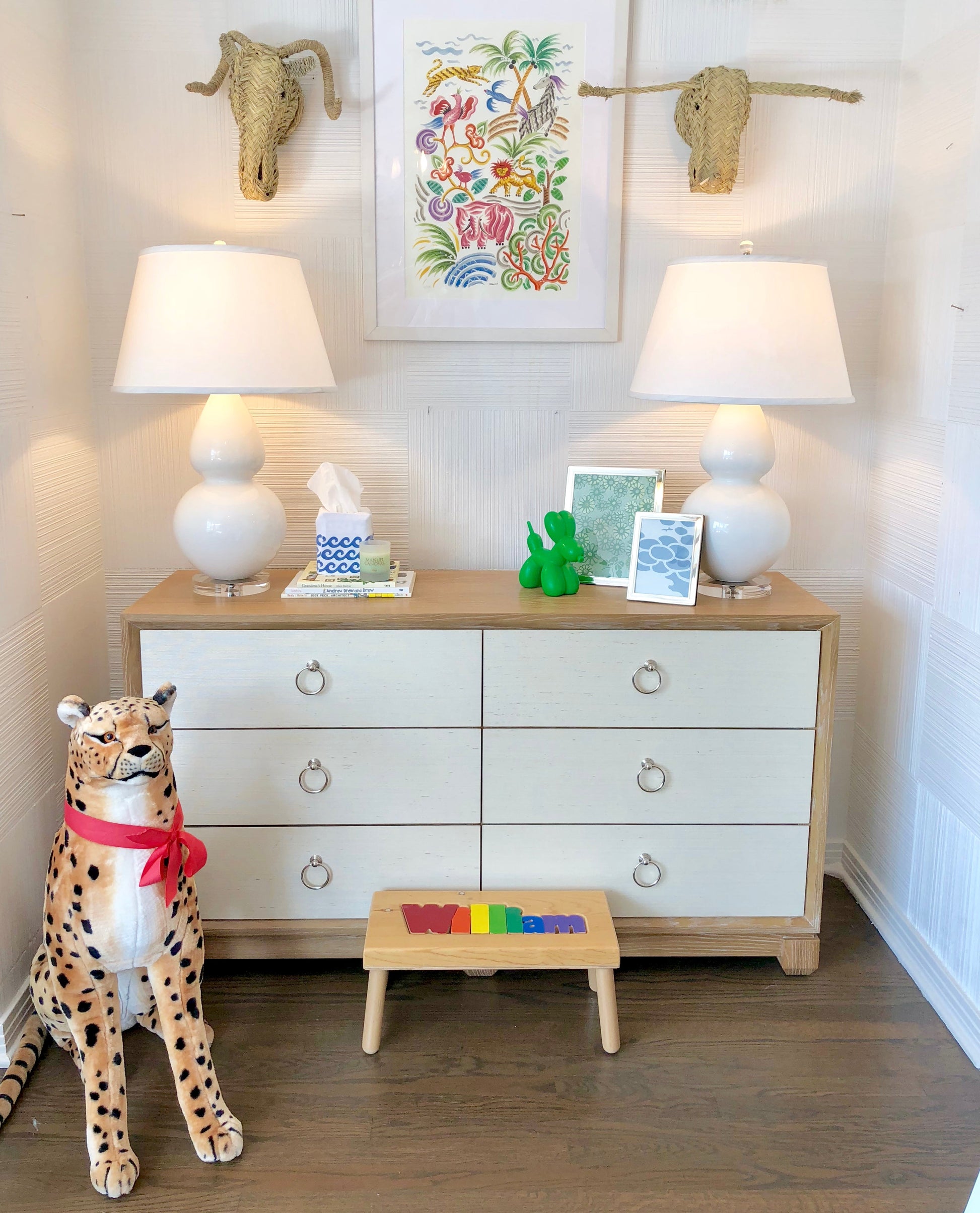 - Comes with a white fabric hardback shade: 19"x13"x12"H