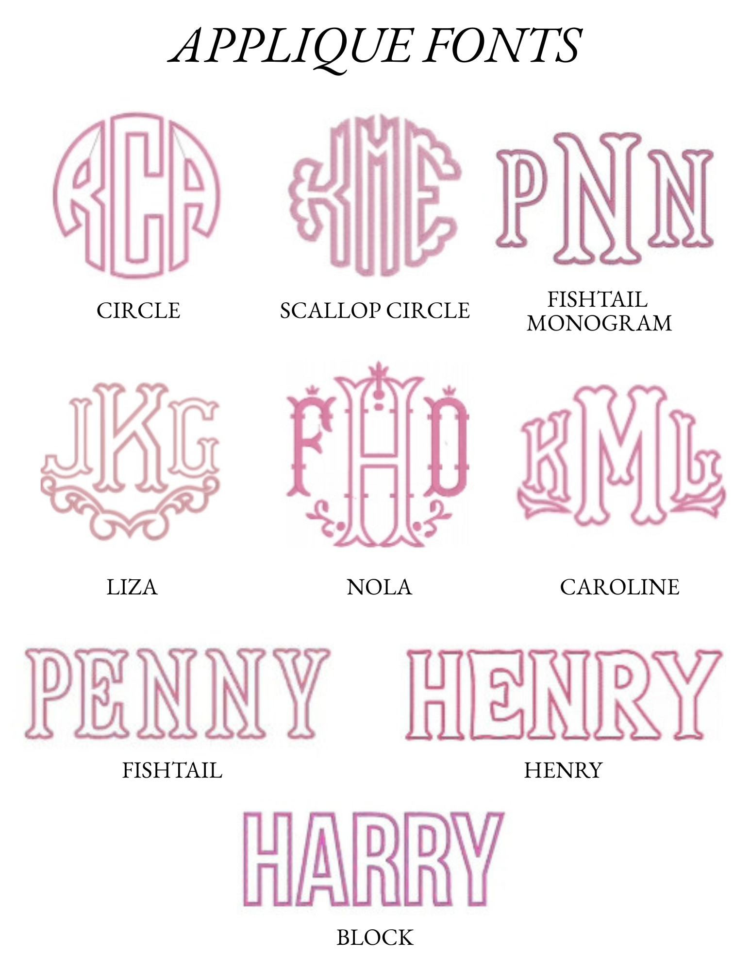 - Please note that the more letters, the smaller the applique