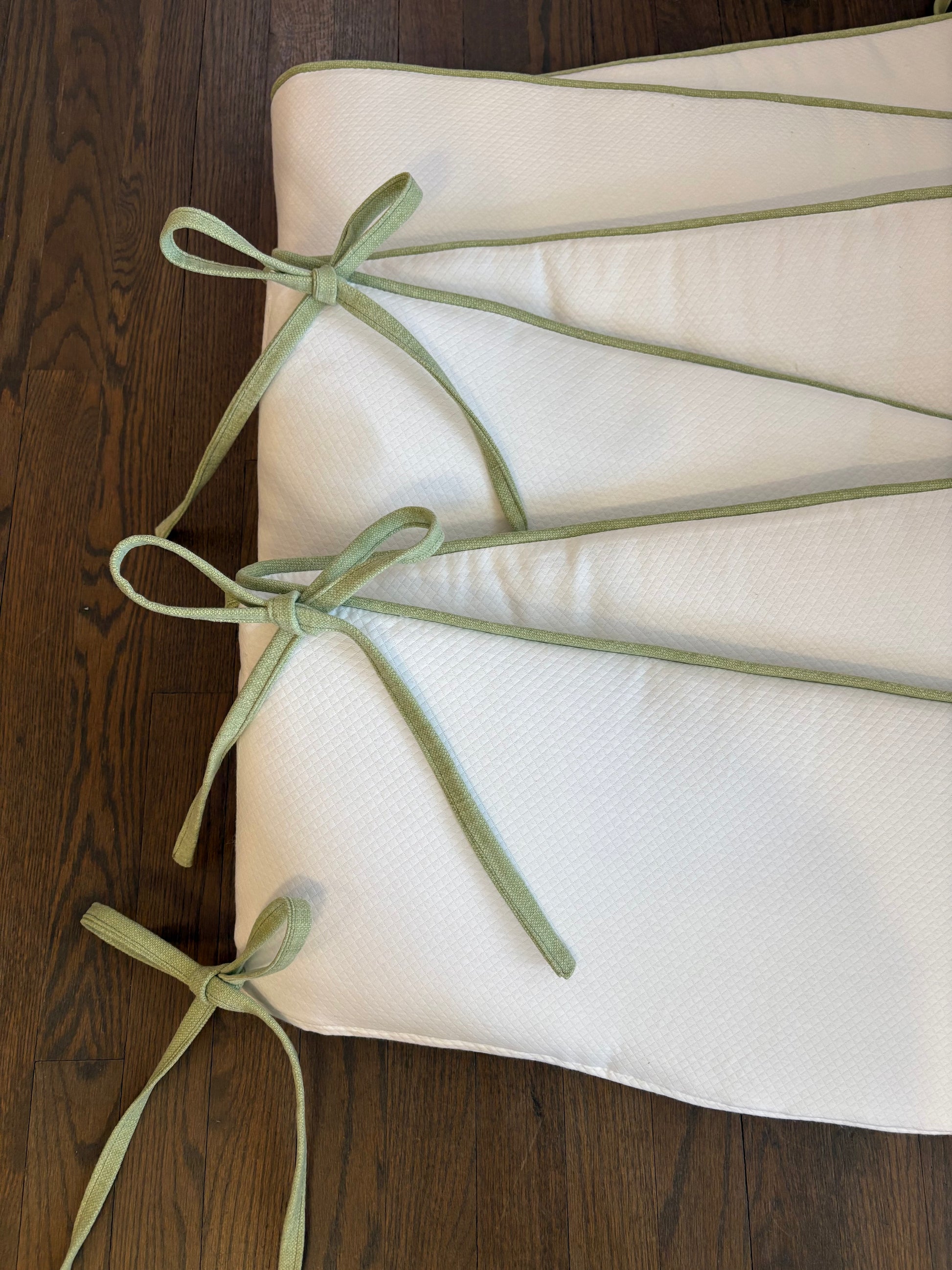 This diamond embroidered, light weight cotton bumper makes for the perfect accessory for any baby's nursery. Pipe it with your favorite color!