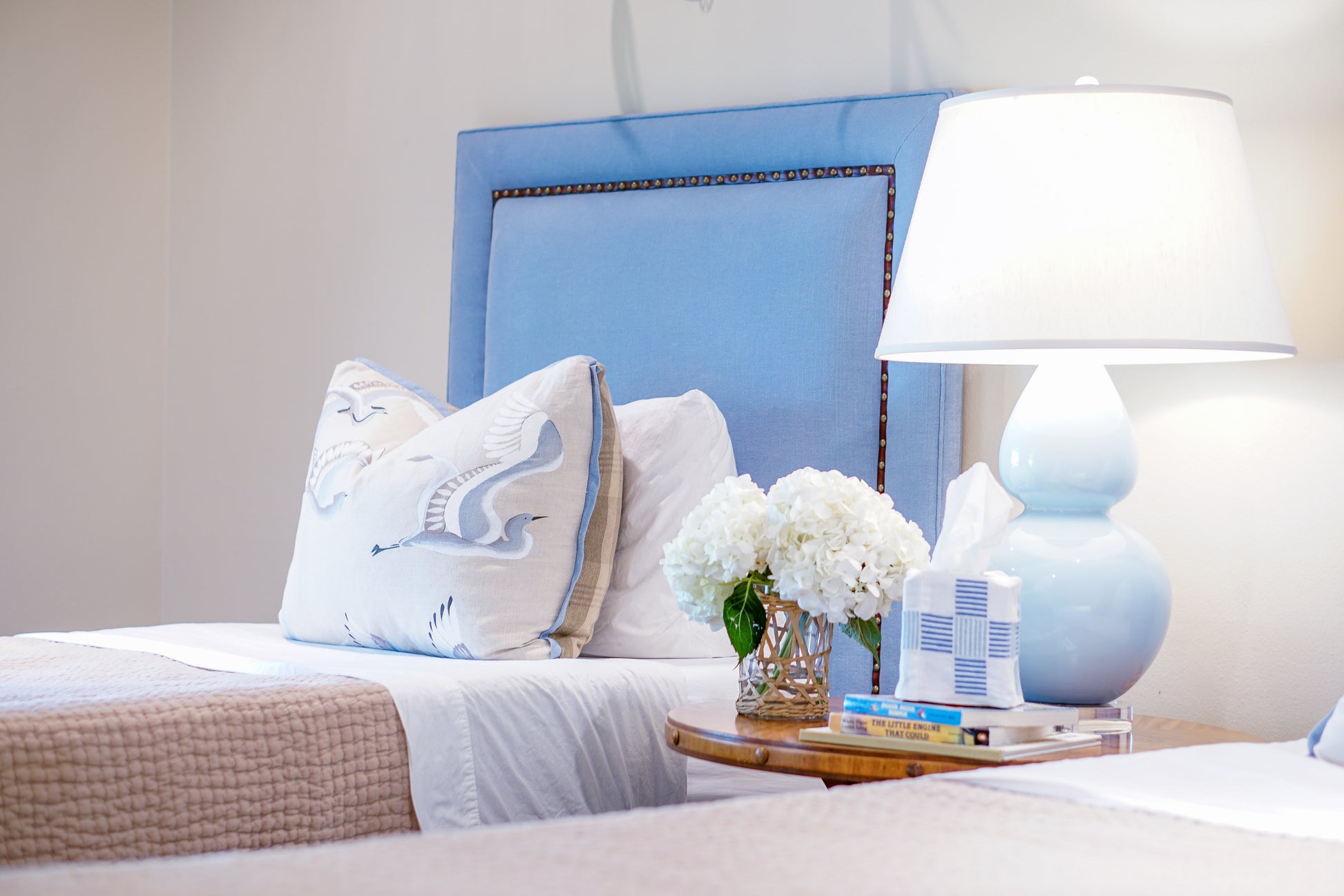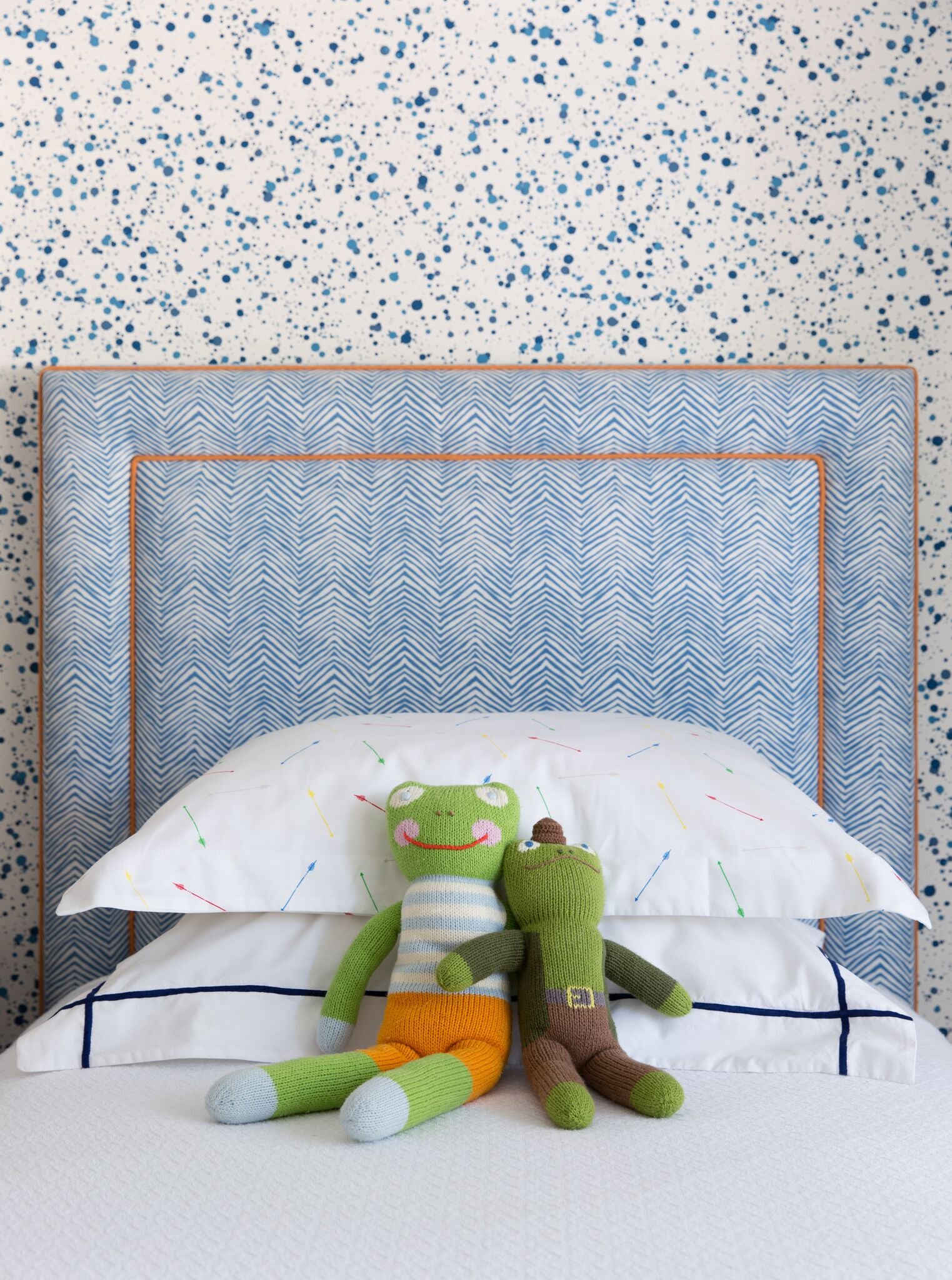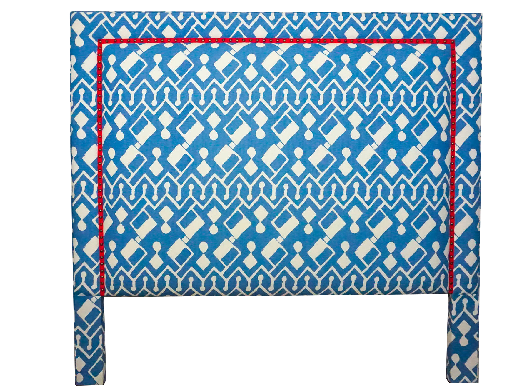 Contrast Piping: Piping fabric is a different color than the main headboard fabric