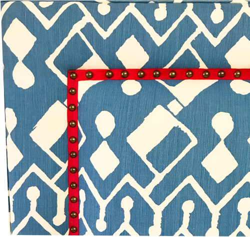 Ribbon Trim/Nailheads: Instead of fabric piping, there will be ribbon with nailheads (see Georgia headboard for example)
