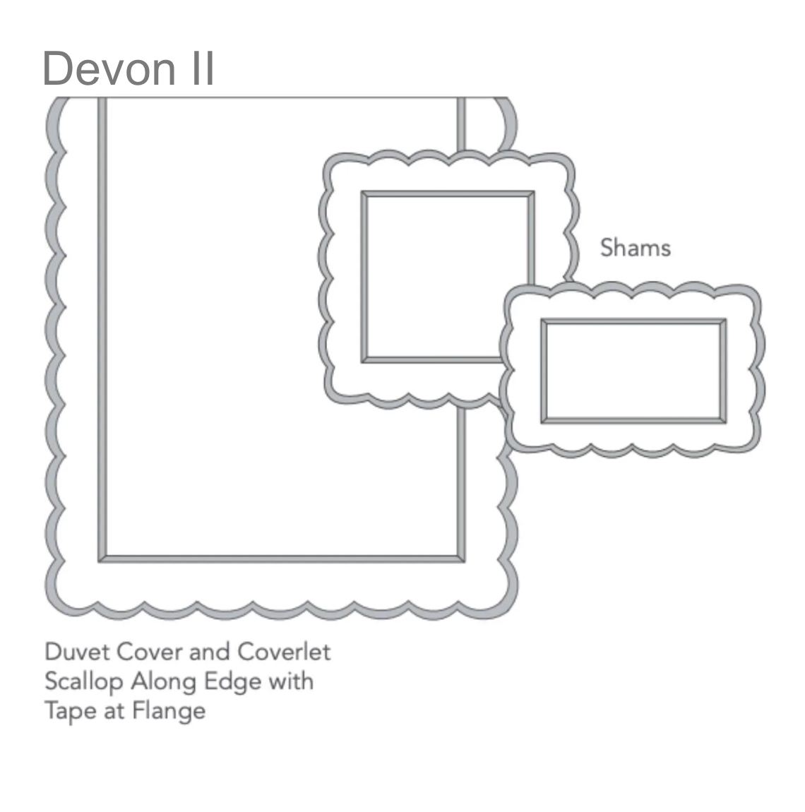 When you need to match the colors just right, this bedding offers the perfect options pulling a bedroom together leaving it looking crisp and photo ready! We love the diamond pique and use them in many of our projects. All Devon II bedding has a scallop boarder with a tape edge and flange. See separate listing for matching Coverlet and Duvet.