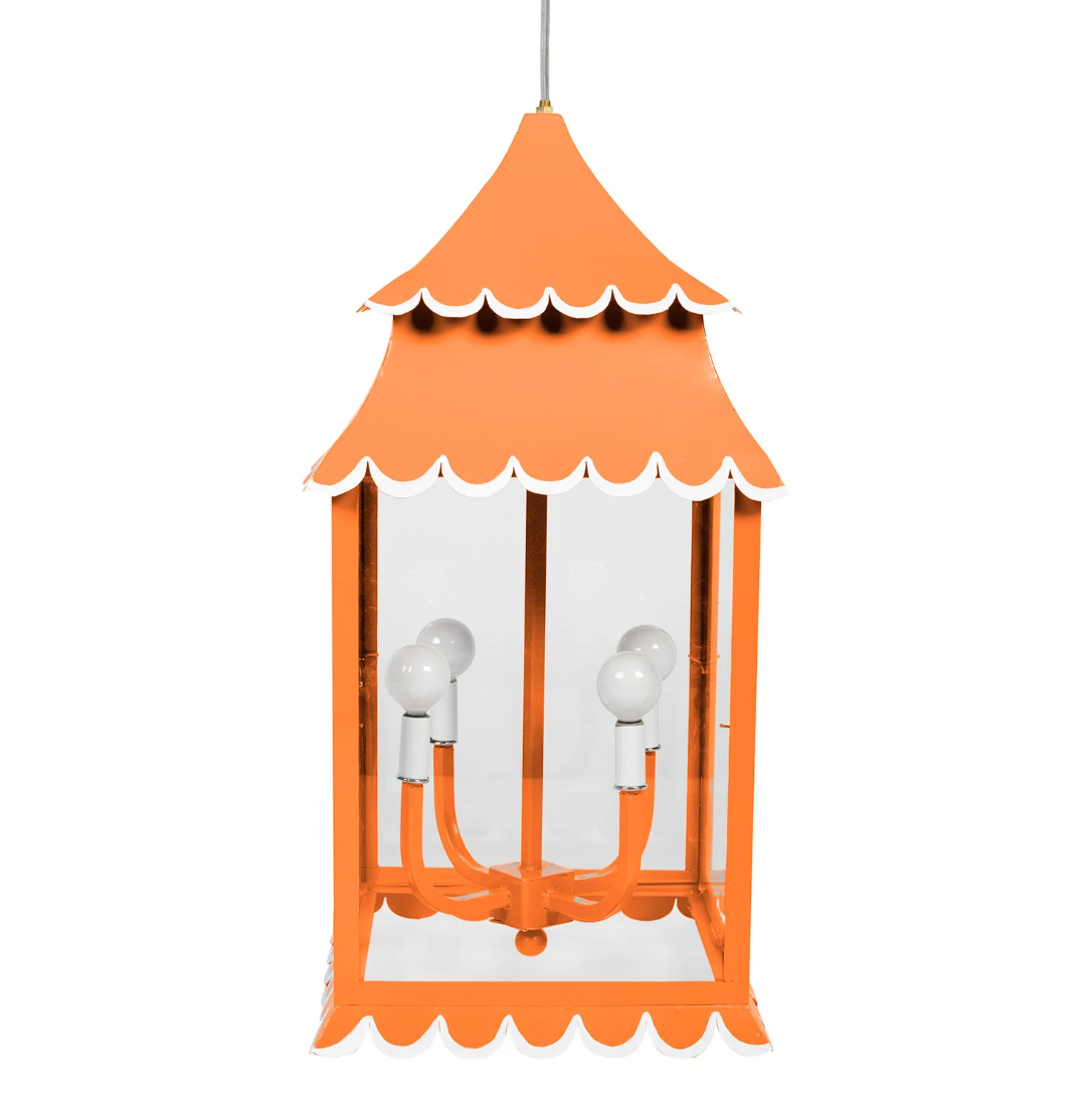 Good Gracious! The Girly Hanging Lantern would turn up the charm factor wherever you hang her. Entirely hand crafted in Mexico with from iron and glass with her darling scallops picked out in white, the Girly hanging light is finished to order with 2 coats of non toxic paint and topped with a water based poly for durability.