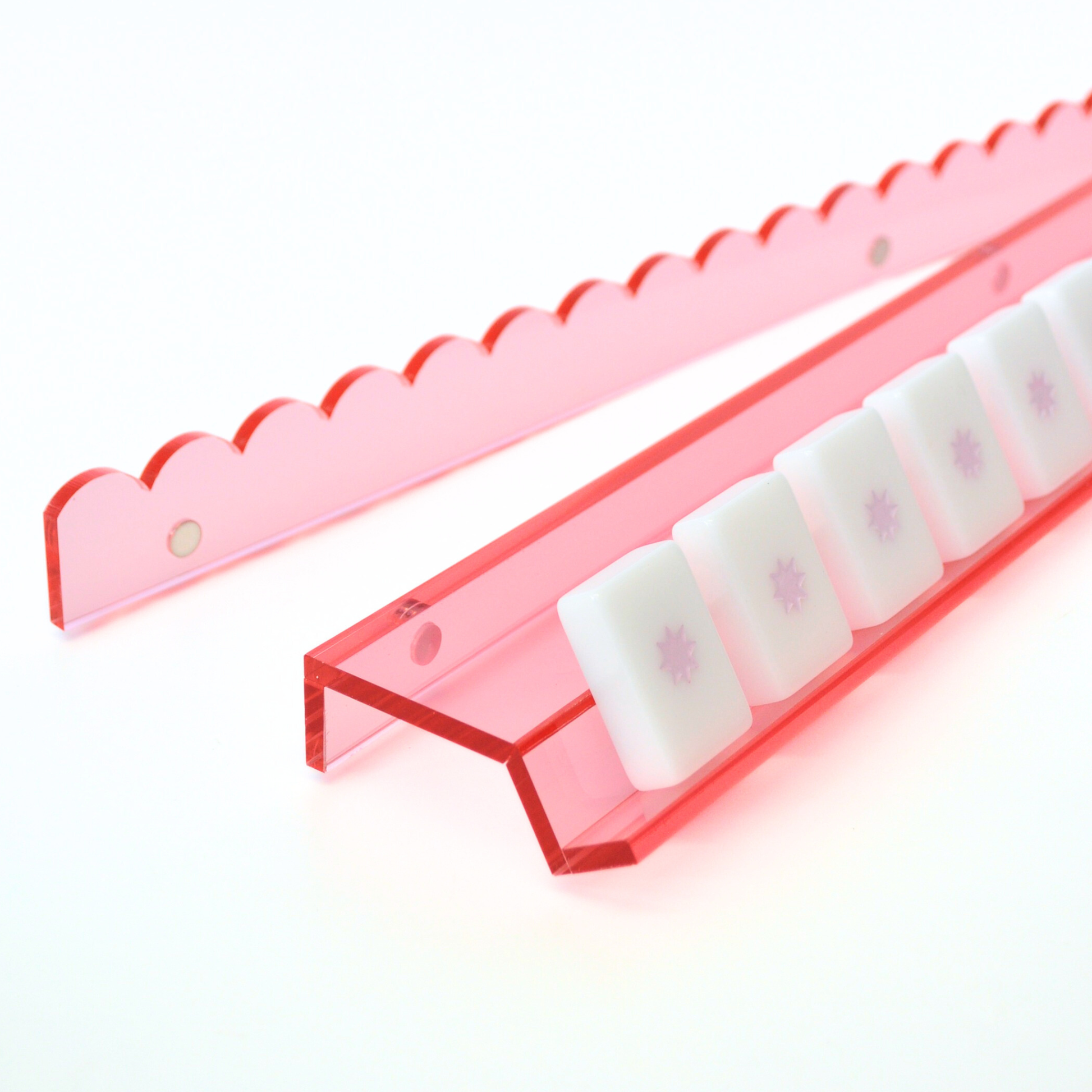 Pink Acrylic Mahjong Rack and Pusher, Set of 4
