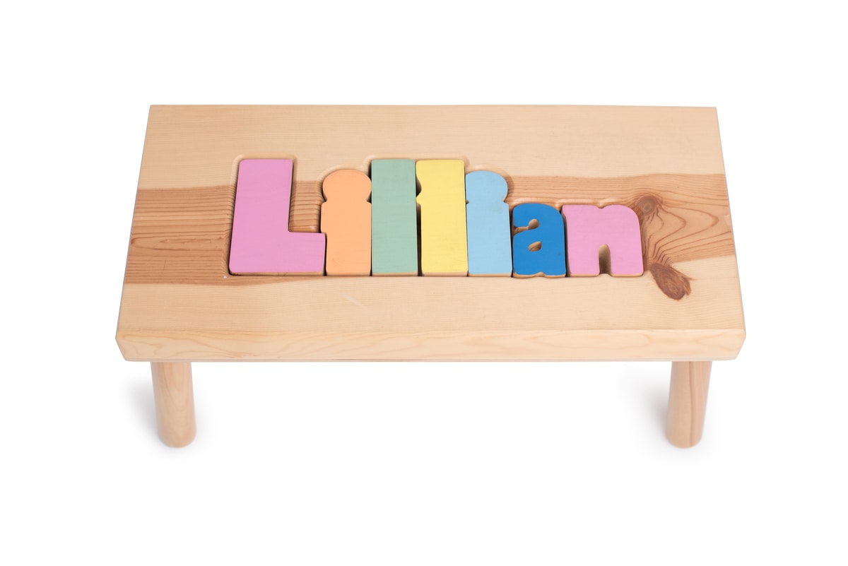 - All Name Puzzle Stool finishes are water based and non-toxic