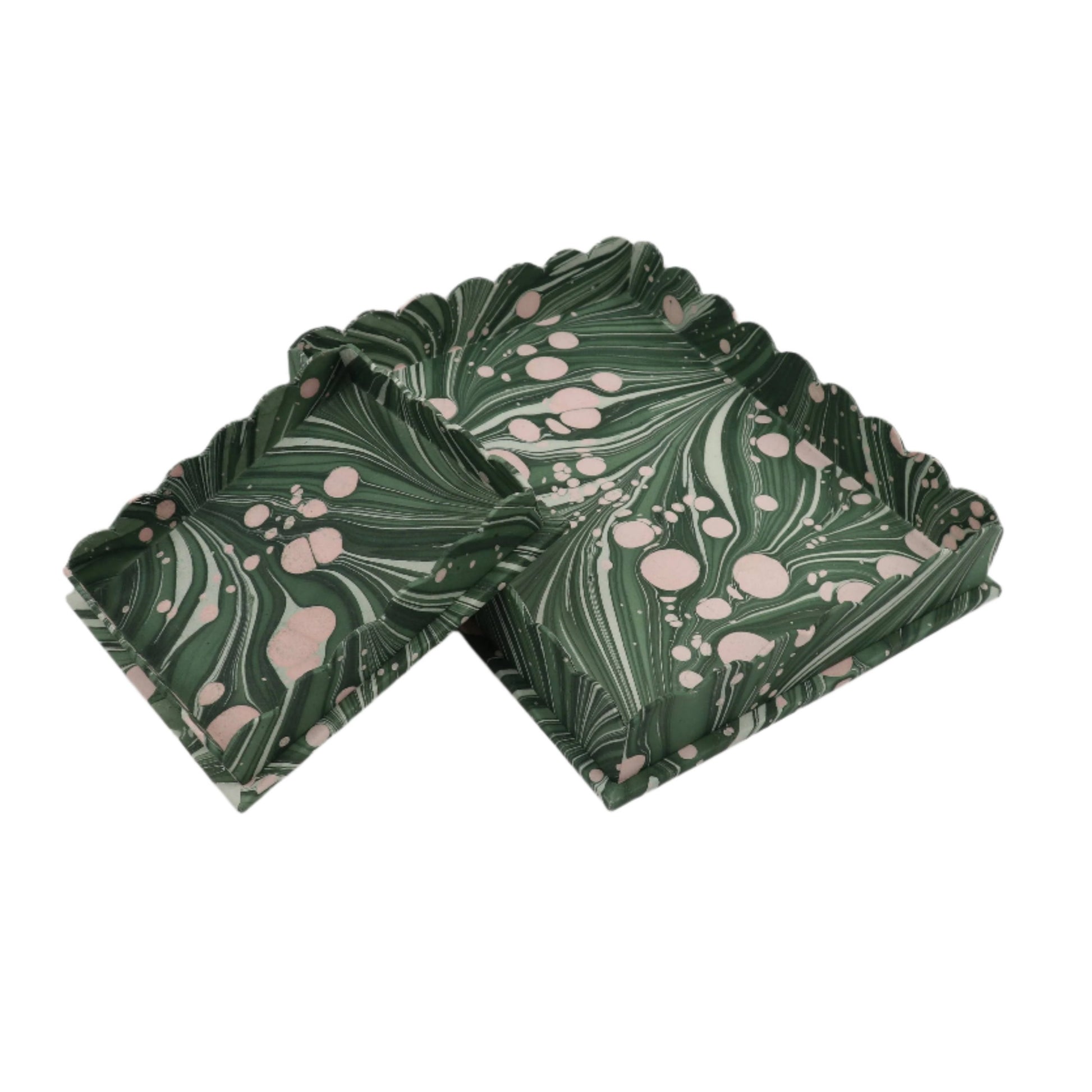 Large Green Marbled Scalloped Tray