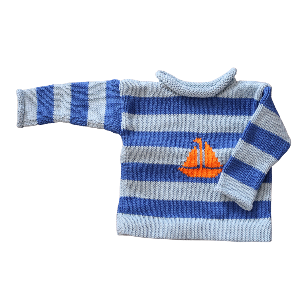 This adorable cotton sweater is hand-knitted for Madre and is perfect for a special baby gift. You can even order for big brother or sister for a matching set!