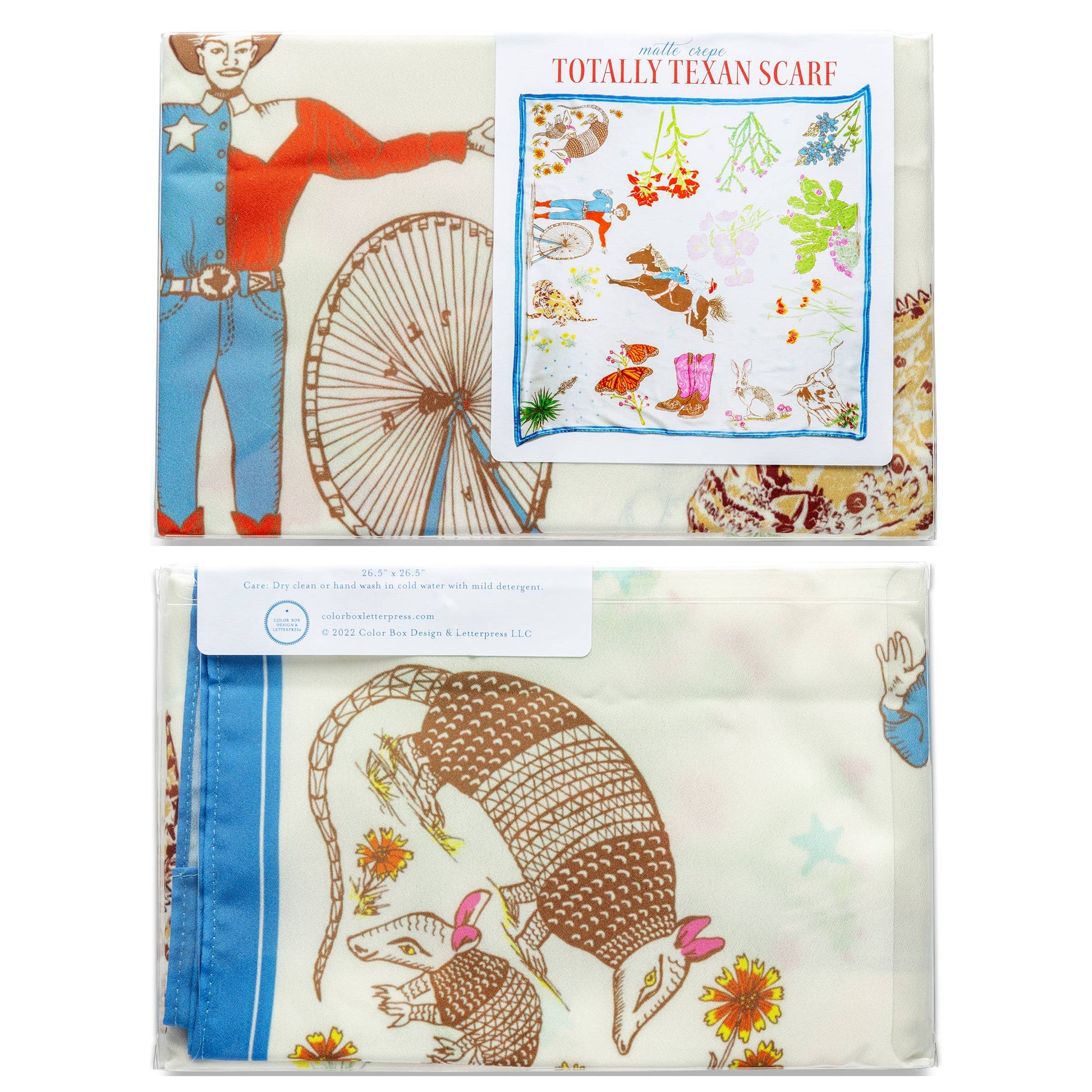 This flowy matte crepe scarf makes for the most lovely scarf to wear, tie on a purse, or gift to a Texan!