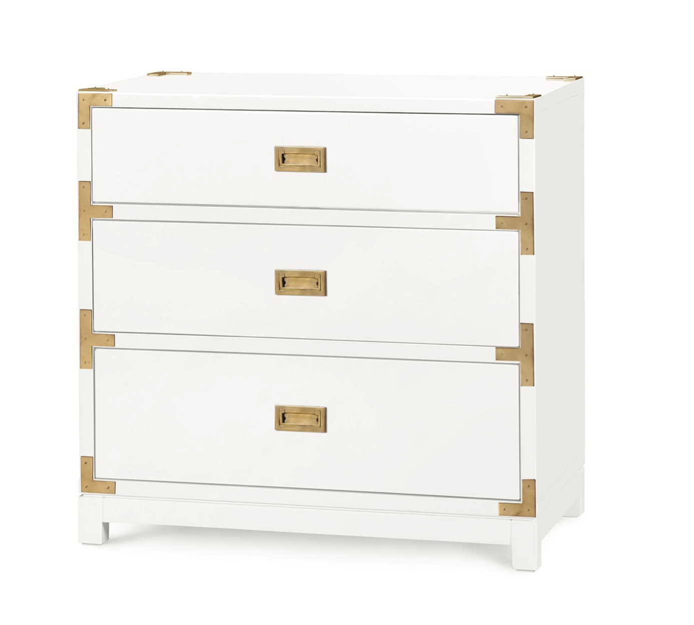 The Victoria 3-Drawer Side Table borrows the adventurous styling of vintage traveling trunks, boasting a solid silhouette and metallic hardware. Enlist it as a bedside nightstand or living room side table, or style two or more together to achieve the look and function of a large dresser.